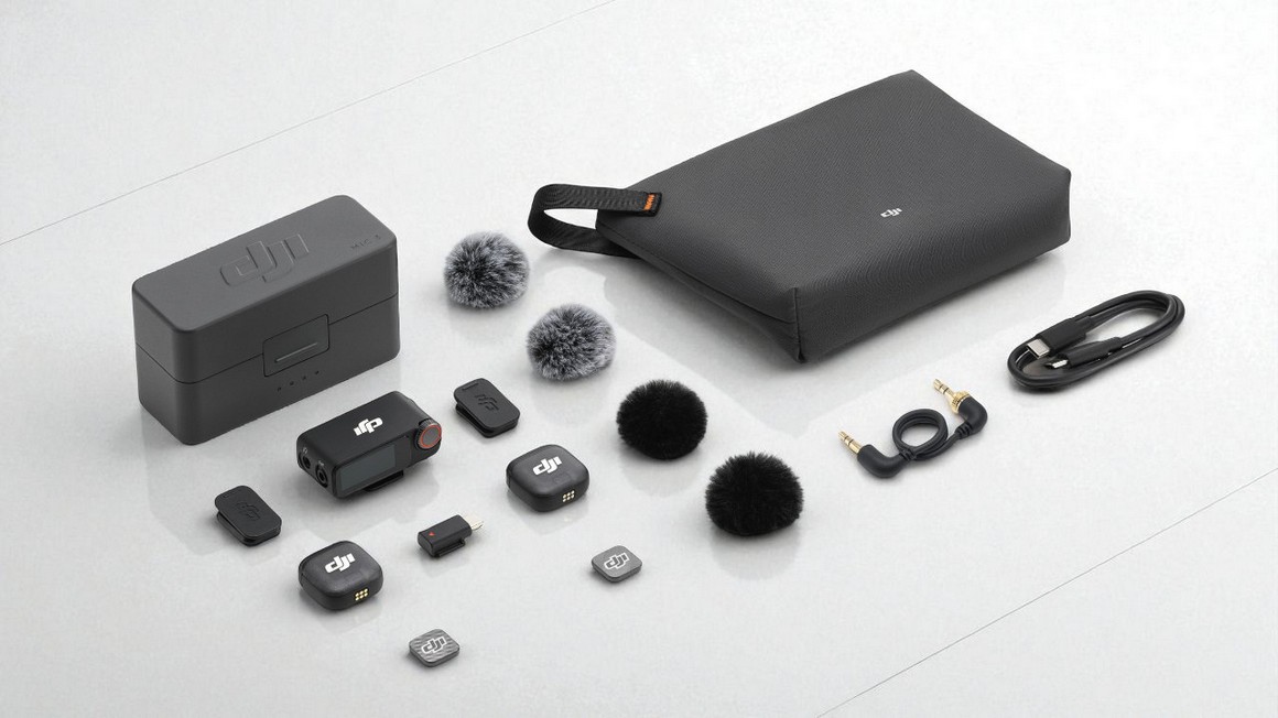 В этот комплект DJI Mic 3 вошло всё, что нужно для начала съёмки. Во-первых, сразу два передатчика и один приёмник, так что можно удобно записывать интервью или влог с двумя участниками. Также есть все необходимые аксессуары: чехол, адаптер Type-C для мобильных устройств, ветрозащита двух расцветок (чёрная и чёрно-серая), магнитные держатели с зажимом, фиксируемый 3,5-мм TRS кабель, отдельные магниты для крепления и кабели для зарядки (один USB-C и один магнитный для передатчика). Но главное - удобный и функциональный зарядный кейс.
