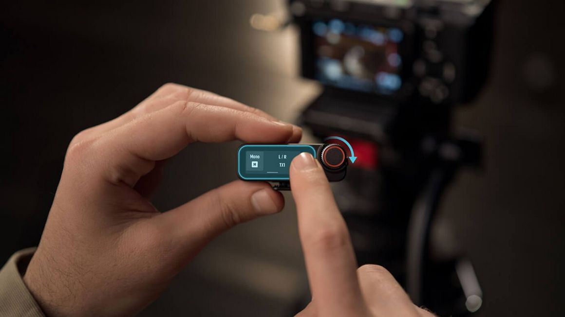 Второй важный элемент комплекта Mic 3 – это миниатюрный приёмник. Его размер всего 53,85 x 28,69 x 22 мм, а весит он 25,1 грамма. При этом тут нашлось место для 1,1-дюймового AMOLED-дисплея, сохраняющим чёткость даже под прямыми лучами солнца. Поворотный регулятор позволяет менять уровень усиления, проверять заряд аккумулятора или переключать режимы – всё это быстро и интуитивно понятно, без лишних слоёв меню. Так что всё необходимое буквально под рукой.