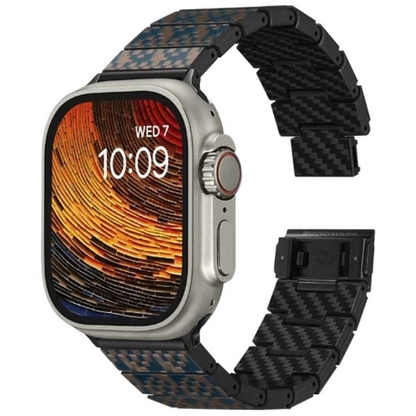 Минималистичная, но в то же время выделяющаяся эстетика ремешка для часов из черного углеродного волокна является модным дополнением к любым часам Apple Watch.
