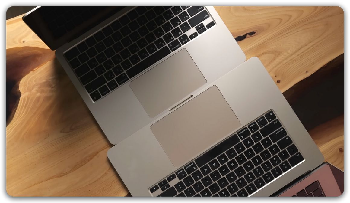 MacBook Air 13” с процессором M5 – это самый лёгкий, тонкий и компактный ноутбук Apple 2026 года, при этом он не уступает 15-дюймовой модели в производительности (за исключением графики, если говорить о младшей модели), наборе интерфейсов и автономности, а в повседневных сценариях вы вряд ли почувствуете разницу даже с MacBook Pro на базовом M5. А вот в чём 15-дюймовый MacBook Air с M5 выигрывает – это размер дисплея и трекпада, качество встроенных динамиков и производительность базовой конфигурации, при разнице в весе менее 300 граммов.