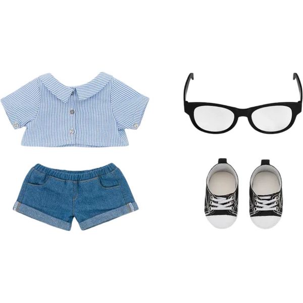 Комплектация: плюшевая игрушка, очки, рубашка, джинсовые шорты, обувь, фирменная упаковка
