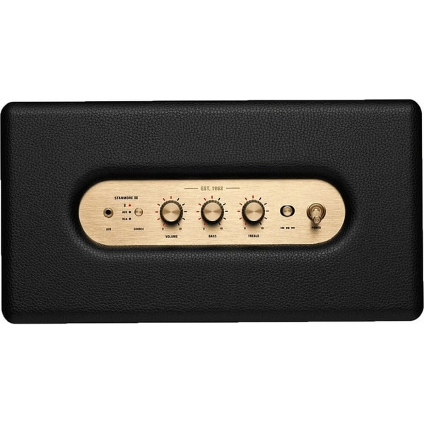 Stanmore III не только стильная, но и мощная. Она способна наполнить звуком даже просторные помещения, обеспечивая насыщенные и сбалансированные частоты. Обновлённая конструкция минимизирует интерференцию звука и обеспечивает точное воспроизведение каждой детали. Расширенный диапазон частот от 45 Гц до 20 кГц позволяет услышать по-настоящему мощные и глубокие басы. Мощность усилителя встроенного НЧ-динамика составляет 50 Вт, а общая мощность всех трёх усилителей аудиосистемы составляет 80 Ватт.