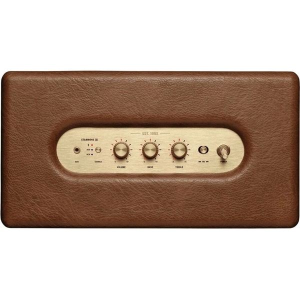 Stanmore III не только стильная, но и мощная. Она способна наполнить звуком даже просторные помещения, обеспечивая насыщенные и сбалансированные частоты. Обновлённая конструкция минимизирует интерференцию звука и обеспечивает точное воспроизведение каждой детали. Расширенный диапазон частот от 45 Гц до 20 кГц позволяет услышать по-настоящему мощные и глубокие басы. Мощность усилителя встроенного НЧ-динамика составляет 50 Вт, а общая мощность всех трёх усилителей аудиосистемы составляет 80 Ватт.