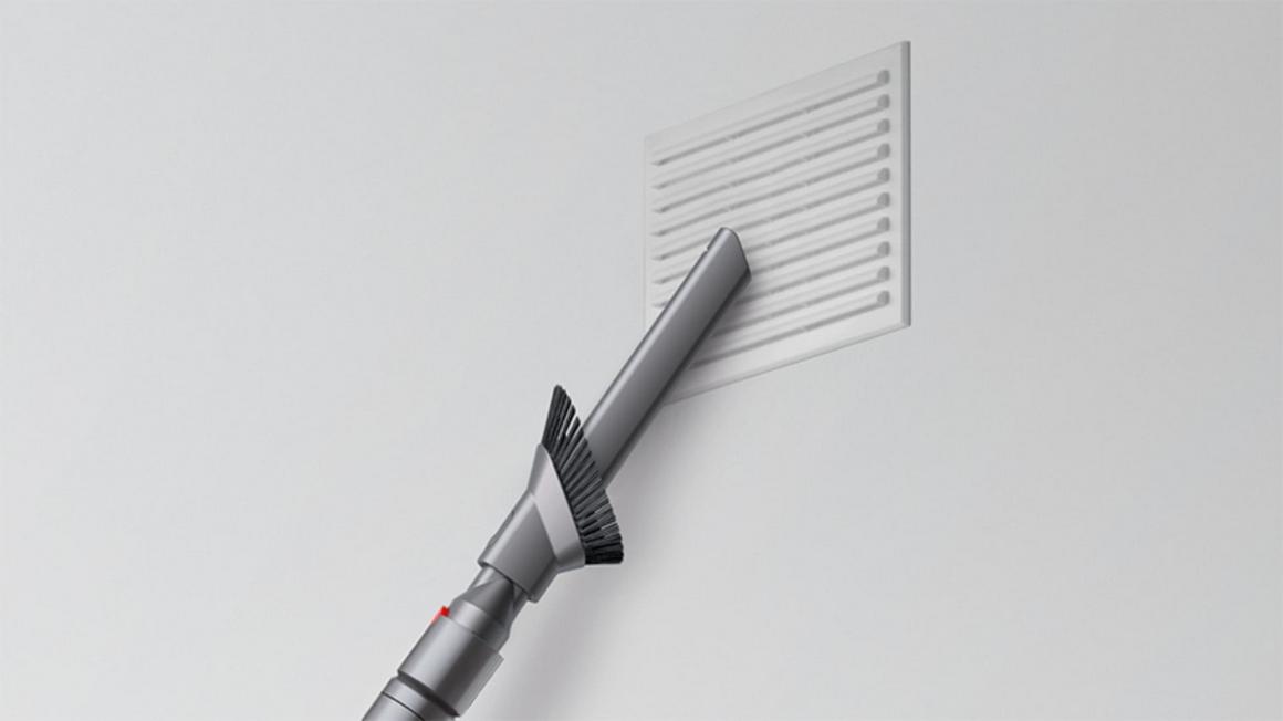 Он выдвигается, сгибается и поворачивается, чтобы удалить пыль из узких и труднодоступных мест. В комплект также входит нейлоновая щетка для удаления крупного мусора.
