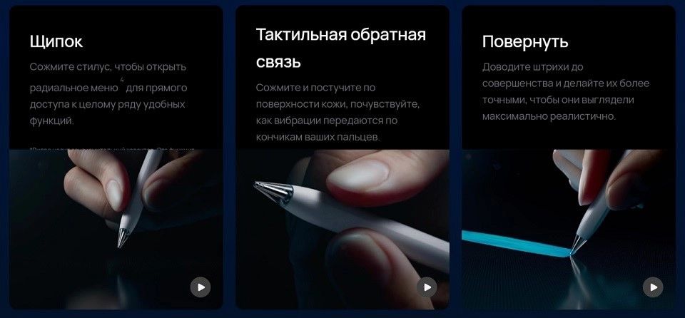 Технология Pinch позволяет, сжав стилус, вызвать на экране радиальное меню с быстрым доступом к частым операциям — смене кисти, выбору цвета или отмене действия. Этот жест сопровождается тактильной отдачей — легкой вибрацией, которая подтверждает действие и создает ощущение взаимодействия с реальным инструментом.