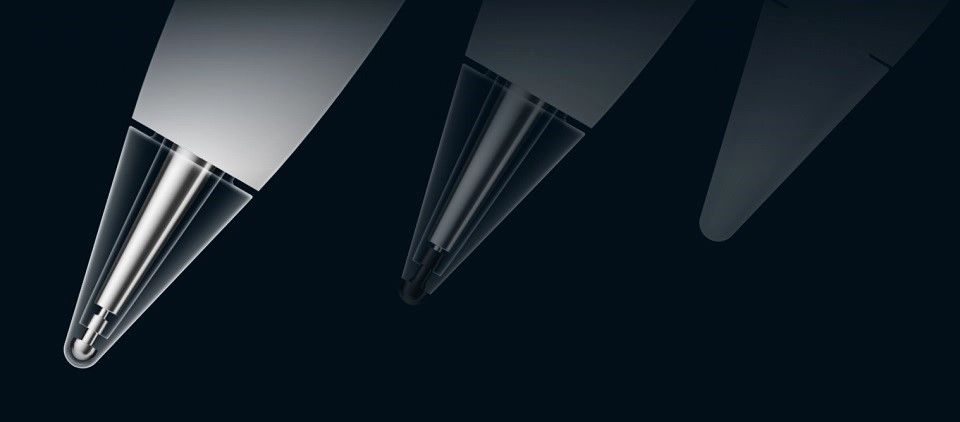 Стилус имеет элегантную граненую форму с шестью слегка скругленными гранями. Такой подход сочетает в себе удобство захвата, характерное для классического карандаша, и современный технологичный вид.