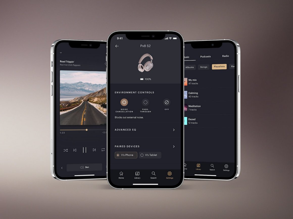 Используйте приложение Bowers & Wilkins Music, чтобы настроить Px8 S2 под свои предпочтения, найти новый любимый альбом и выбрать нужный тип шумоподавления. А благодаря новому пятиполосному эквалайзеру подстроить музыку под свои предпочтения теперь стало ещё точнее.