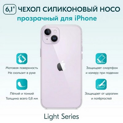 Чехол силиконовый Hoco Light Series для iPhone 15 Plus (6.7") тонкий TPU 0,8mm Прозрачный