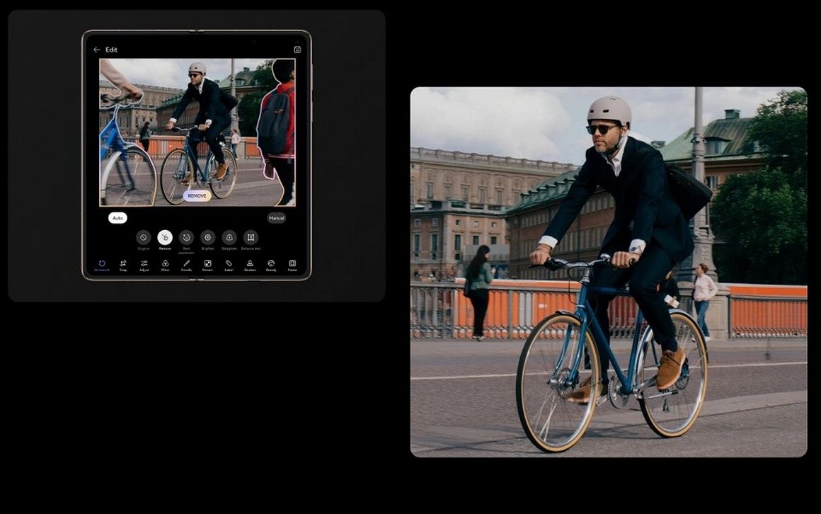 Смартфон использует возможности искусственного интеллекта: например, можно убрать шум или лишние объекты с фотографии.