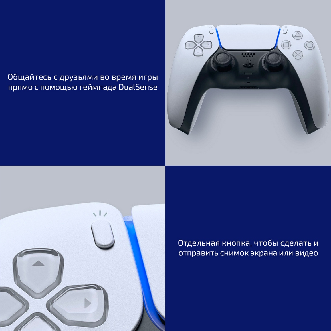 Приобщайтесь к сообществу геймеров, обменивайтесь впечатлениями и публикуйте свои лучшие моменты с легкостью. Геймпад PlayStation 5 станет вашим надежным спутником в виртуальных приключениях, а простая публикация скриншотов и видеоклипов с помощью кнопки Share позволит быстро поделиться яркими моментами, не забывая – на чём вы остановились в игре. Встроенный в геймпад микрофон позволит общаться без подключения гарнитуры, а трекпад и гироскоп делают управление приставкой и многими играми проще и комфортнее.