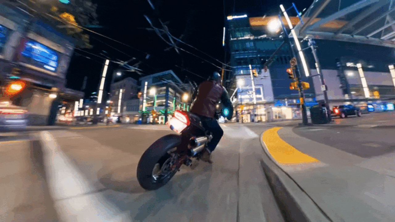 Устройства DJI славится продвинутой стабилизацией, и Osmo 360 не стала исключением. Здесь есть два режима: с HorizonSteady камера корректирует дрожание и горизонтальные наклоны в диапазоне 360°, легко справляясь с ударами, резкими поворотами и даже полными переворотами, а в режиме с одним объективом технология RockSteady 3.0 эффективно гасит тряску, сохраняя естественную динамику движения, что создаёт более захватывающий вид от первого лица. Так движение чувствуется, но не мешает просмотру.