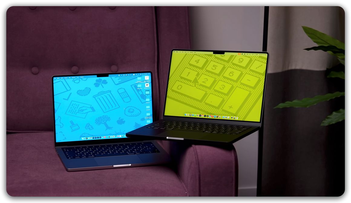 MacBook Pro 14” и MacBook Pro 16” во многом похожи. Черты дизайна и расцветки, количество портов, динамики и даже производительность одинаковых конфигураций. 14-дюймовый MacBook Pro компактнее и легче, его удобнее носить с собой и проще разместить возле внешнего монитора, не закрывая. 16-дюймовые модели предлагают чуть более эффективное охлаждение в силу большей площади рассеивания тепла алюминиевым корпусом, а также слегка дольше работают во многих сценариях за счёт увеличенной ёмкости аккумулятора.