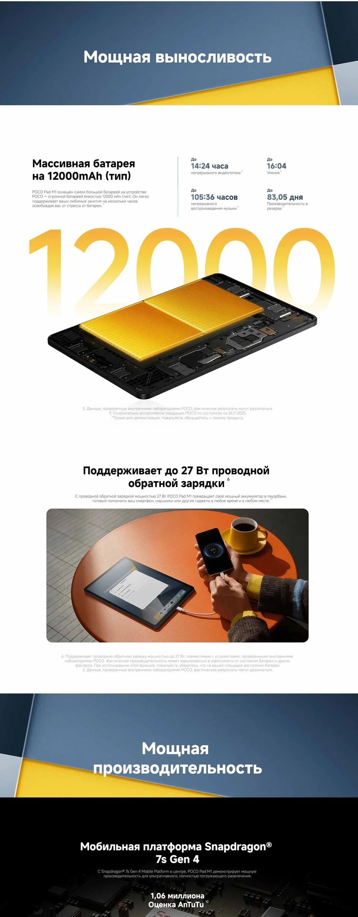 Конфигурация процессора: 1x Kryo Prime (Cortex-A720) 2.7 ГГц, 3x Kryo Gold (Cortex-A720) 2.4 ГГц, ещё