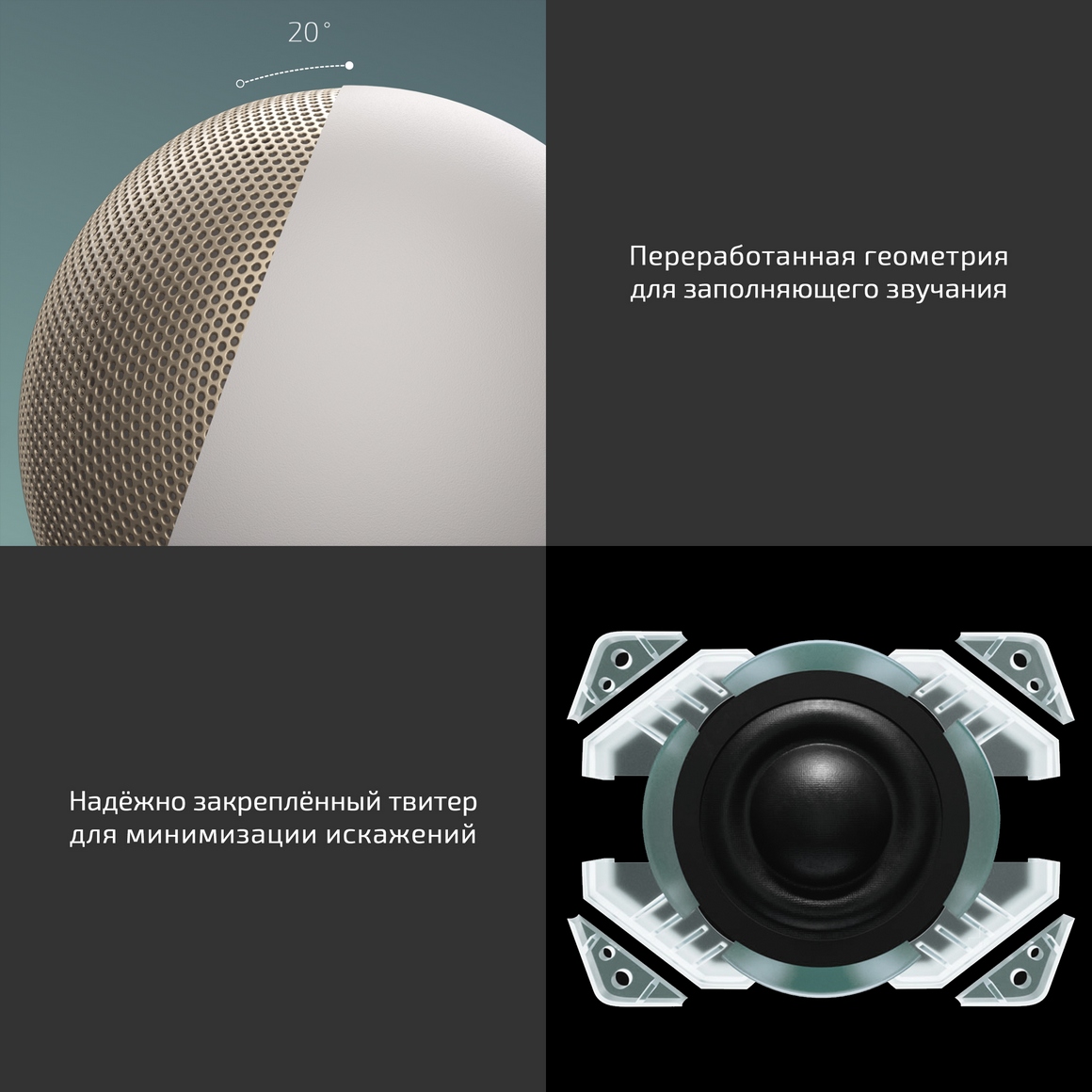 Твитер, закрепленный в собственном корпусе для дополнительной стабильности, помогает уменьшить искажения и обеспечивает четкие высокие и насыщенные средние тона, что позволило сконцентрировать мощь НЧ-динамика на басах. Во многом это заслуга увеличенной на 28% двигательной силы, за счёт улучшенных неодимовых магнитов.