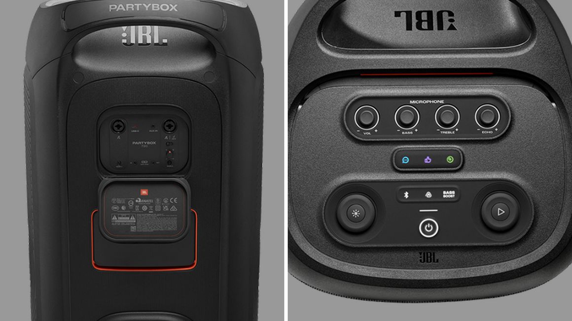 PartyBox 720 способна выдать до 800 Вт фирменного звучания JBL Pro Sound – не только с внушительной громкостью, но и с отличной детализацией. За глубокие и ощутимые басы отвечают два массивных 9-дюймовых низкочастотных динамика, заставляющие пространство буквально вибрировать в такт музыке. Дополняет их пара 30-миллиметровых купольных излучателей, которые отвечают за чистое воспроизведение вокала и верхних частот. И можно не боятся непогоды или брызг бассейна – PartyBox 720 защищён по стандарту IPX4.