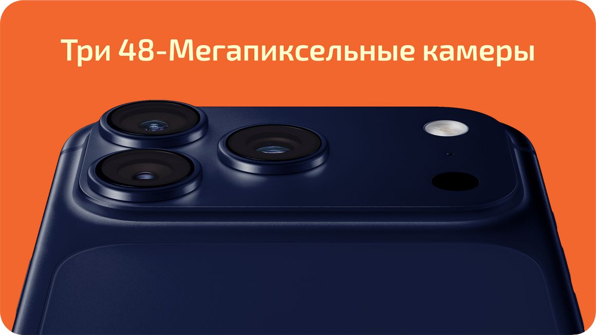 Уже давно Pro-серия iPhone – скорее камера со встроенным смартфоном, а не наоборот. В этот раз множество улучшений тоже пришлись именно на камеру. Обновились не только алгоритмы Photonic Engine, все три задние камеры iPhone 17 Pro теперь 48-Мегапиксельные, а выступ по всей ширине спинки подчёркивает акцент на съёмку (а заодно позволяет смартфону без чехла нормально лежать на столе). Сенсорная кнопка «Контроллер камеры», представленная в предыдущем поколении, тоже на месте.