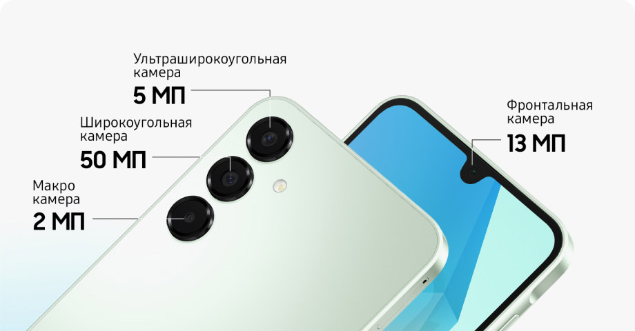 Основная камера смартфона состоит из трёх модулей с разрешением 50, 5 и 2 мегапикселя соответственно. Благодаря диафрагме f/1.8 фотографии и видео получаются чёткими и детализированными даже при недостаточном освещении.